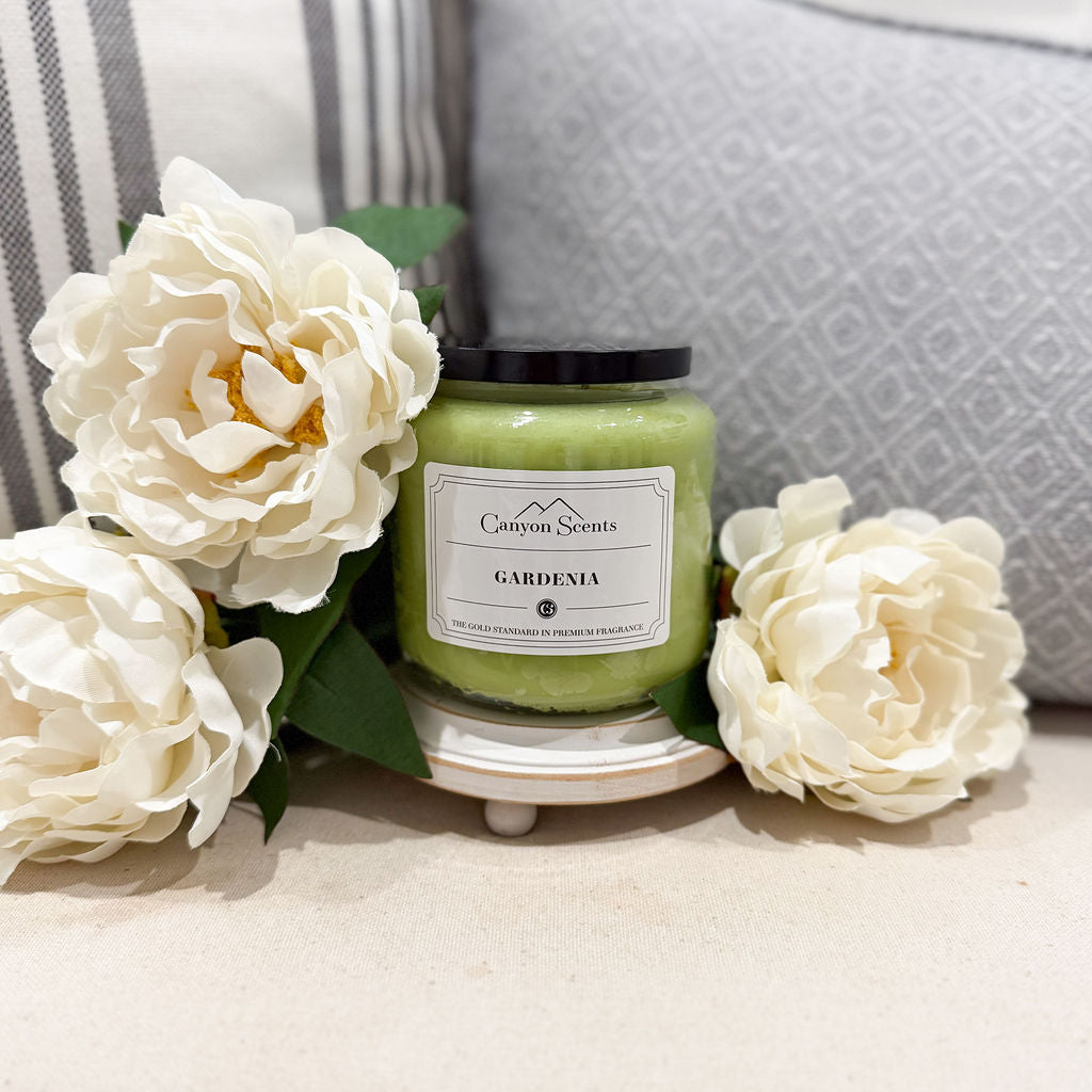 Gardenia - Take your senses on a fragrant stroll with botanical gardens, blended with a whisper of musk, and slight essence of lemon. This floral fragrance has notes of Greens, Lily of the Valley, Jasmine, rose, and musk.